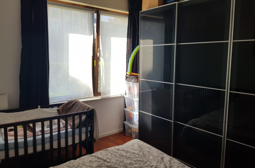 À vendre : bel appartement en rez-de-chaussée de ±75 m² avec jardin privatif de 100 m². Hall d’entrée, WC séparé, chambre, séjour lumineux, cuisine équipée, grande salle de bain, buanderie, terrasse et cave. PEB G, électricité conforme. Proche commerces et transports.
